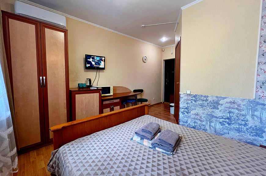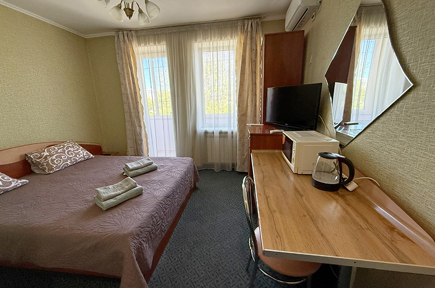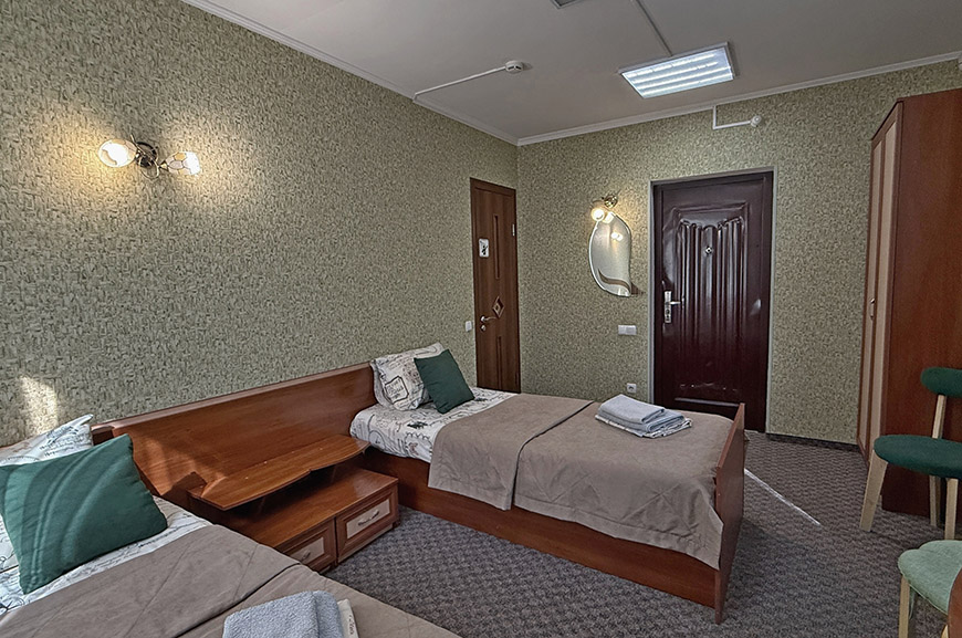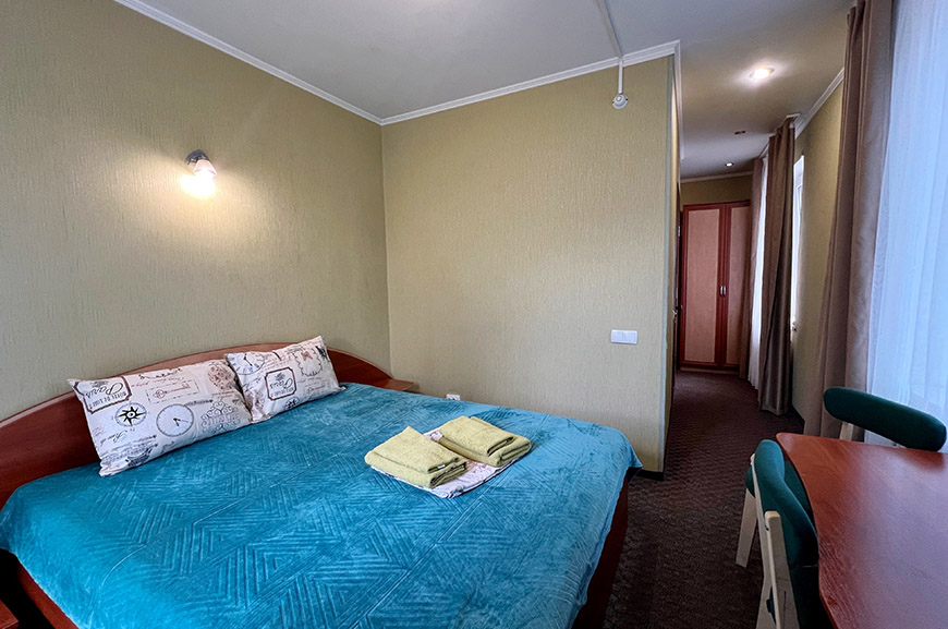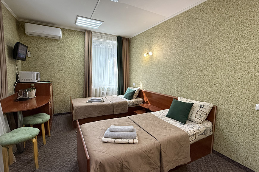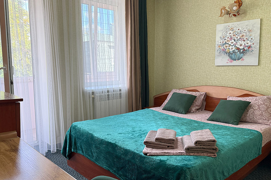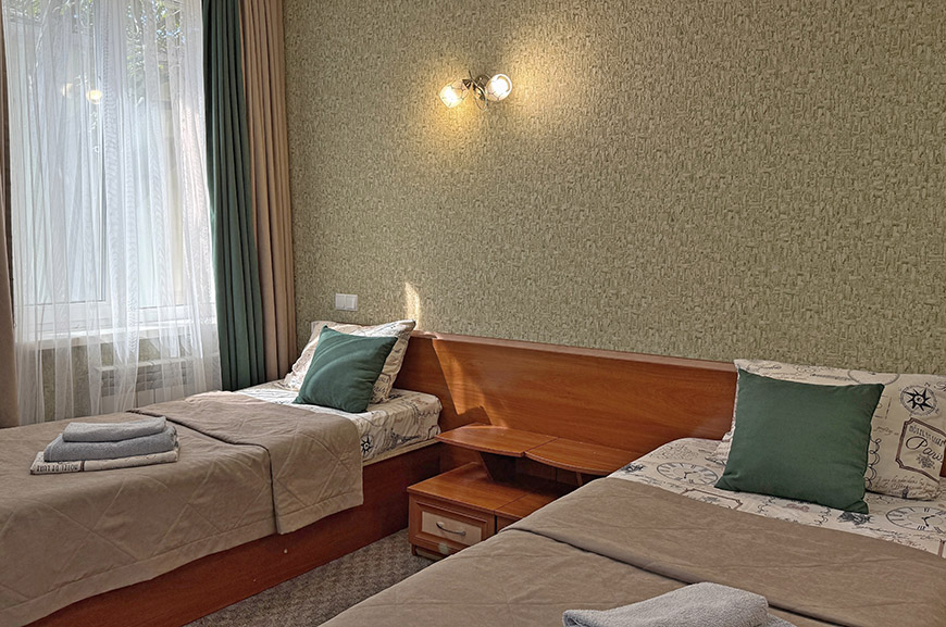 В данной категории доступны к бронированию номера с 2-х спальной кроватью и диваном (2 места) ; 2-х спальной кроватью и доп. местом; с двумя раздельными кроватями.